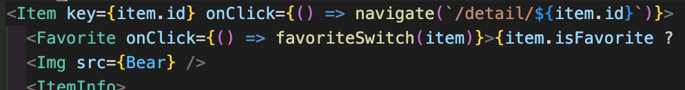 카드의 하트를 클릭시 찜하기 기능, 카드 클릭시 상세페이지로 이동하는 기능을 구현하다가 Favorite을 클릭해도 상세페이지로 navigate되는 문제가 생겼다.